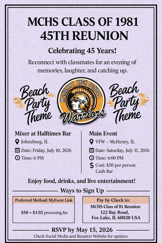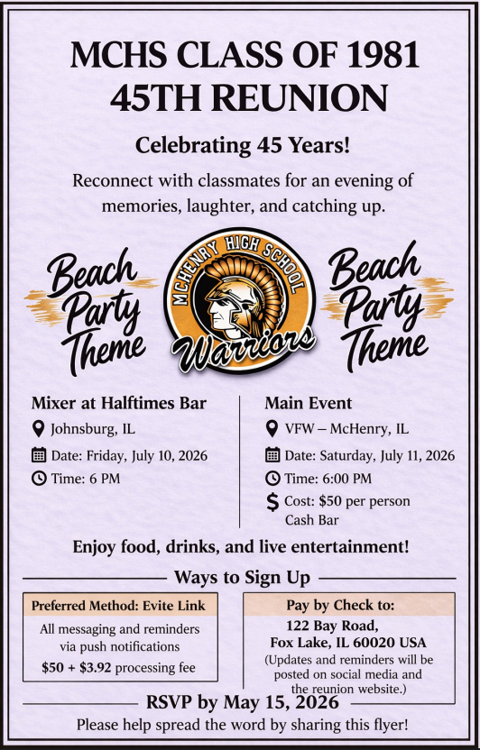 McHenry High School Class of 1981 Get your tickets here For Hotel reservations at the Hilton use this link here